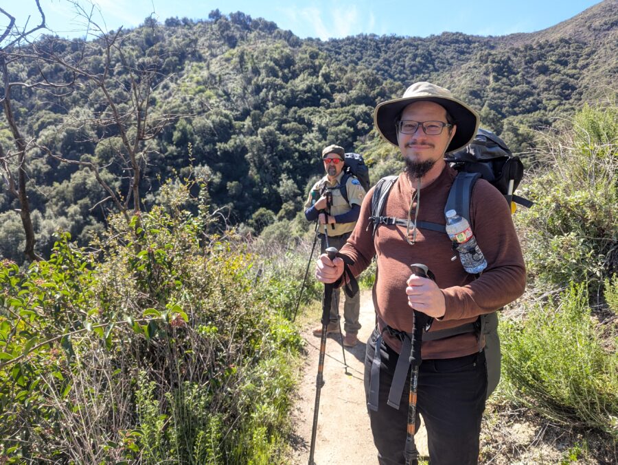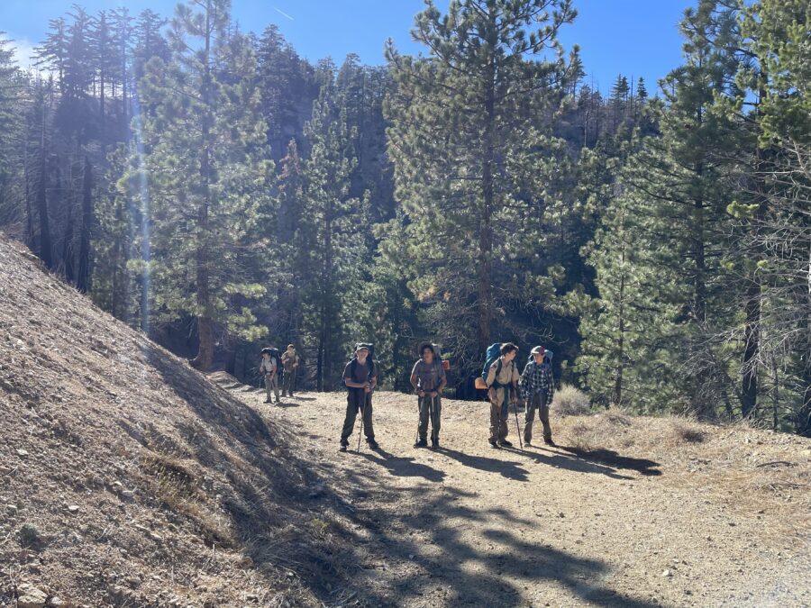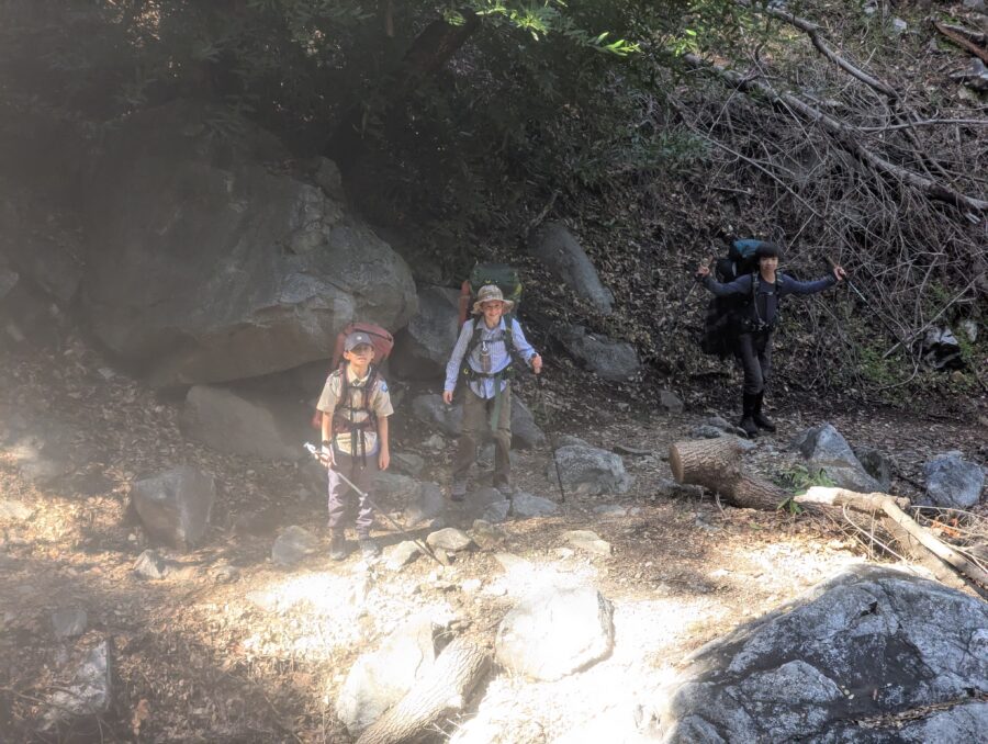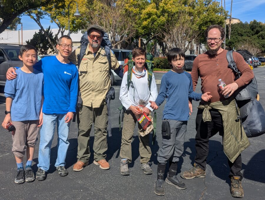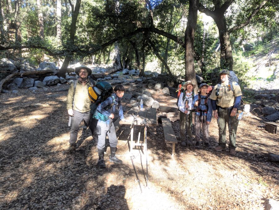 On the weekend of Feb 21st, 3 scouts and 3 adults set off from the Chantry Flat Campground for a backpacking experience along the Upper and Winter Lower Creek Trail. We were very fortunate to get a beautiful weather window after nearly a week of torrential rains. Because of the low fire danger, scouts had the opportunity to light fires in the fire pits and work towards cooking merit badges. Our excursion leader Ted made a good strategic call in taking the higher (Upper) elevation trail on the first day to avoid the countless stream crossings we encountered on the return trip, thus reducing the chances of suffering wet feet on our time at camp! It was a great opportunity to make new friends and share tips on gear and packing techniques amongst each other. Special thanks to our taxi drivers Esther Cha and Casey Chan, and of course the generosity of Ted Zeiss, who hauled a large quantity of water and extra meals in his 70L pack to help support our more junior troop members!