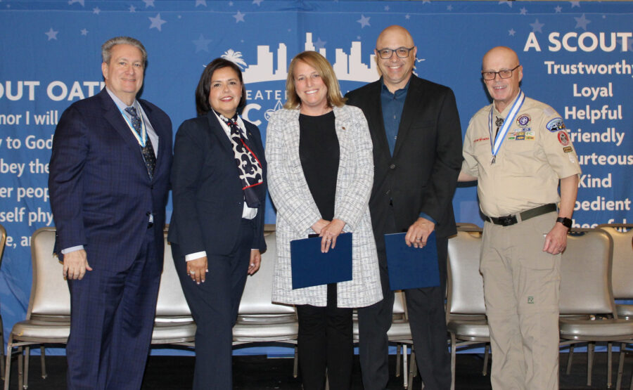On March 25, 2025, Troop 21 Scoutmasters Jennifer and Marcus Errico were awarded one of BSA’s highest honors, the National Medal of Merit, at the Greater Los Angeles Council annual recognition dinner. They were recognized for “performing an act of service of a rare or exceptional character that reflects an